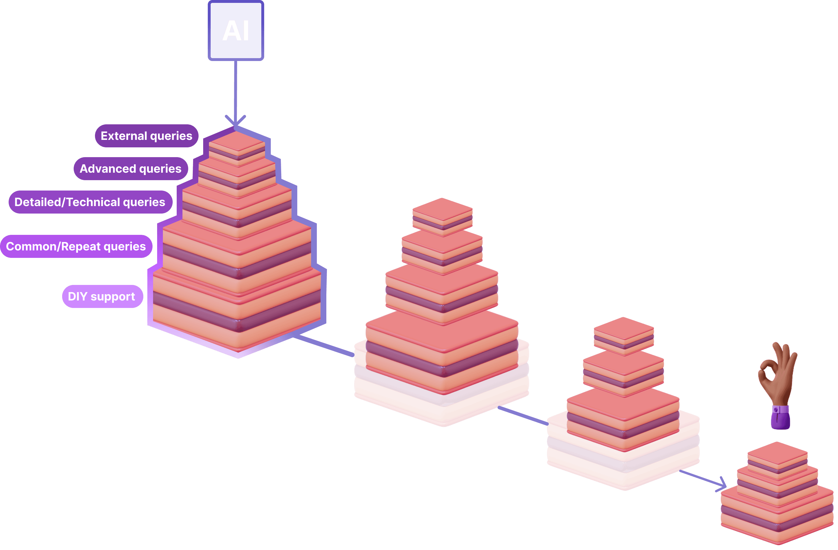 In traditional support models, the structure often resembles a pyramid. There is a large base of level 1 support agents focused on addressing the most common and easily resolvable issues.