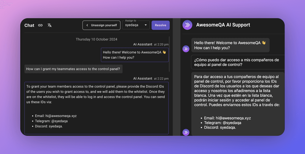 Fixed an issue where messages from support agents requiring translation would display as “translating…” until the page was reloaded. Now, translations appear instantly without needing to refresh the page.