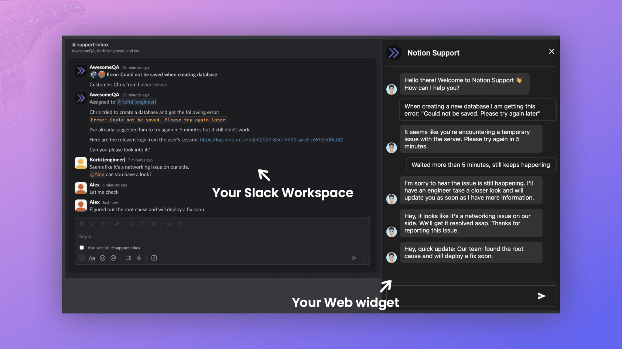 Messages written to the end user in the Zendesk app are no longer forwarded to the internal Slack channel. This change ensures that only system-generated updates and escalations appear internally, helping reduce noise.