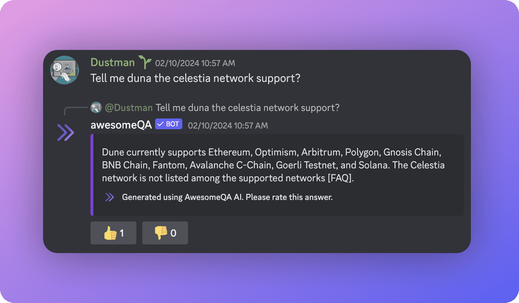 We understand how important it is for clear instructions to be available as you set up and begin to use the AwesomeQA bot. Now, if AwesomeQA is tagged but can’t reply, you will receive more specific guidance instantly in response to your question: