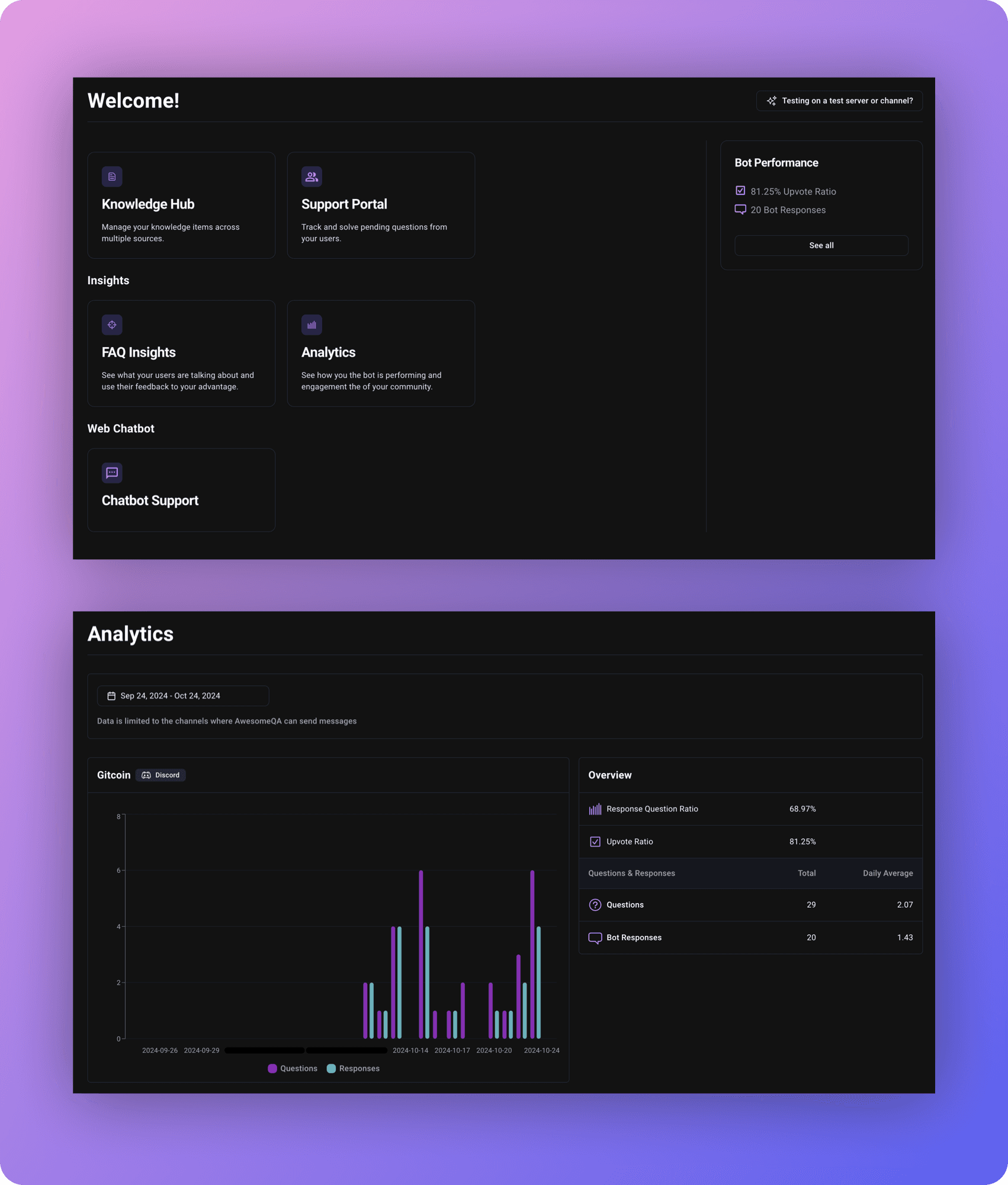 Many servers used languages other than English as their primary mode of communication in channels. When installing the AwesomeQA bot for support, they were only able to train it by uploading web pages like documents. Consequently, the 'chat history' wasn't accessible for the bot to learn from.